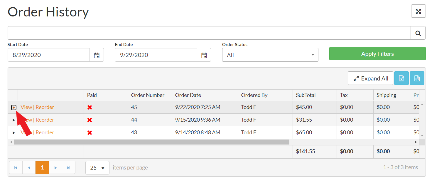 Click Here For Full Order History How-To Support Article